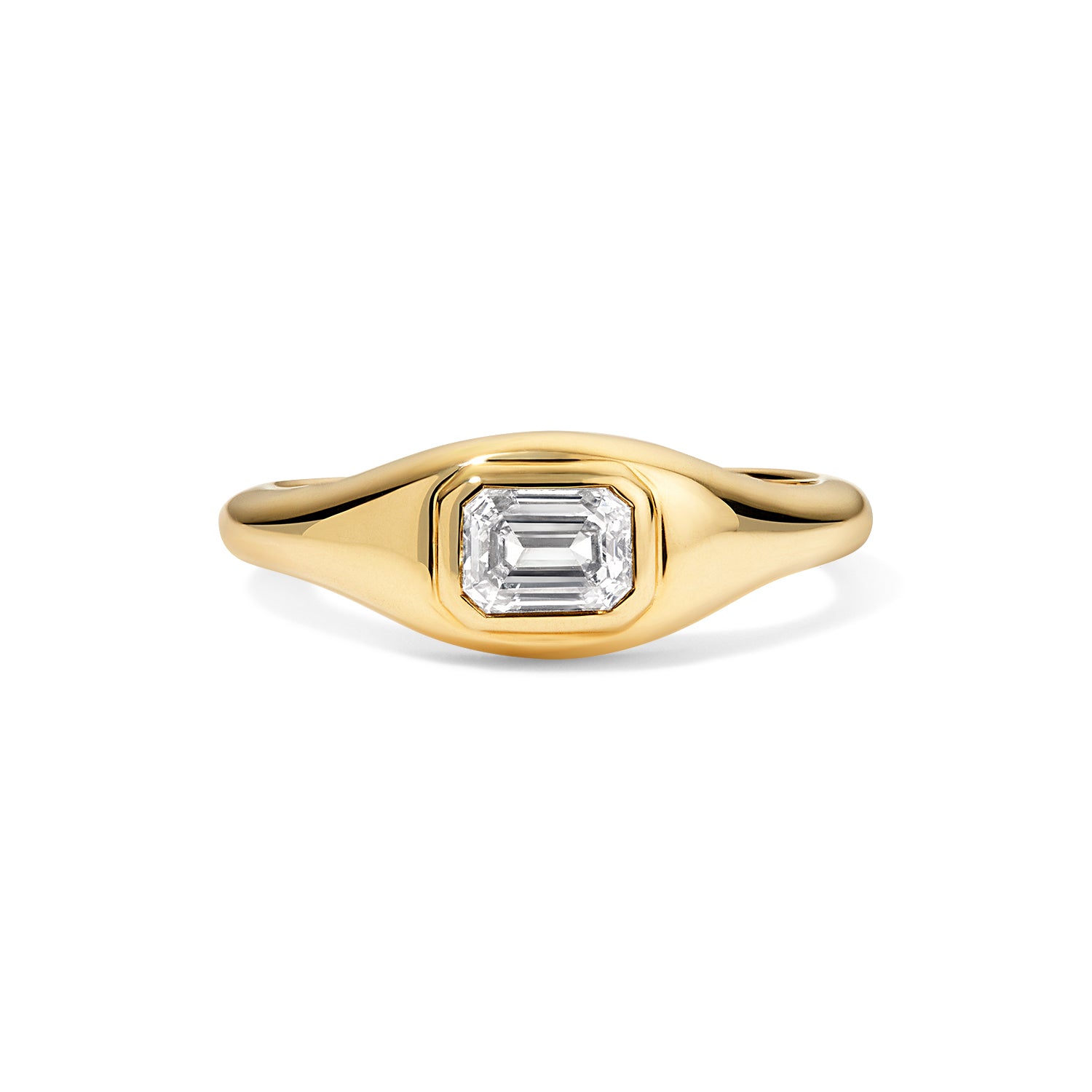 14K YELLOW GOLD PETITE EMERALD SIGNET RING