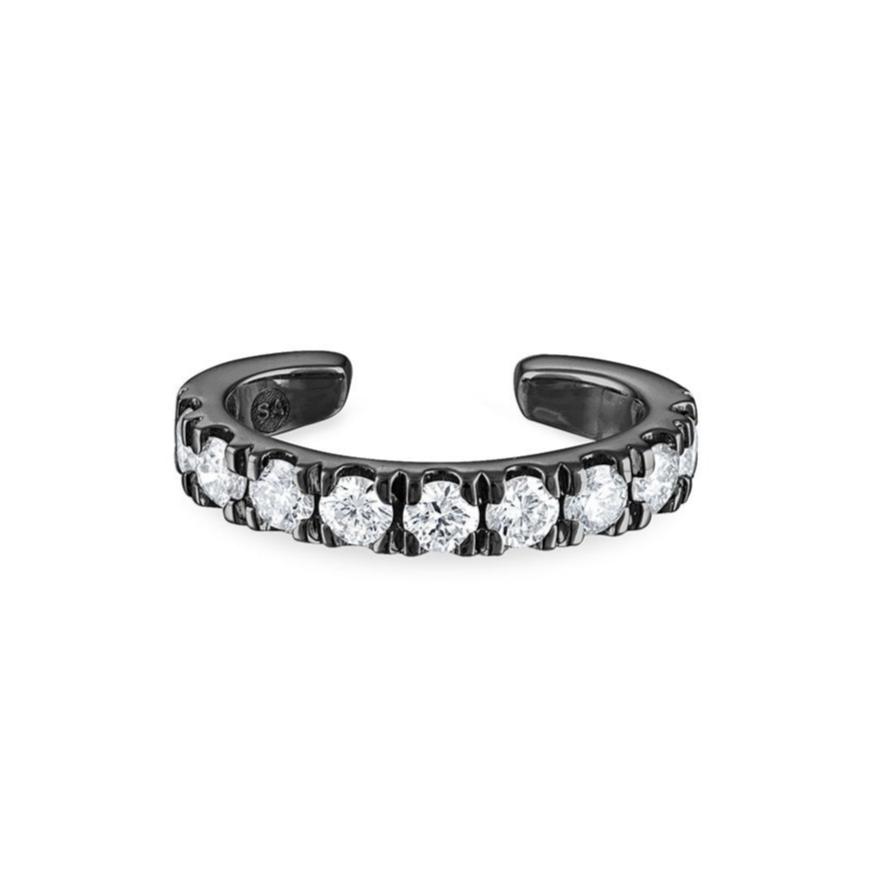Black rhodium dipped 14K gold, scoop-set diamond ear cuff.